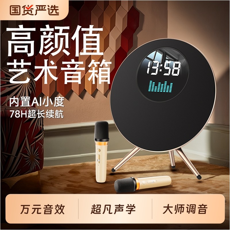金运P66音响家用客厅2025新款摆件蓝牙音箱家庭ktv麦克风唱歌音质
