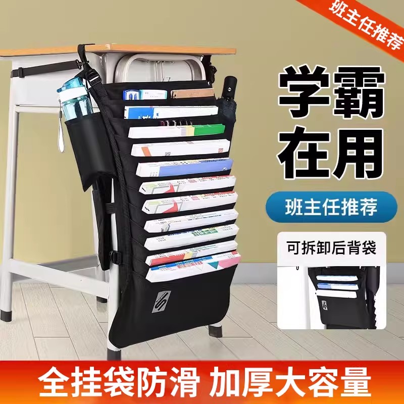课桌收纳学生书桌挂袋大容量挂书袋高中生初中生书袋收纳多功能神器桌边带放书书立挂桌侧桌边带课桌收纳神器