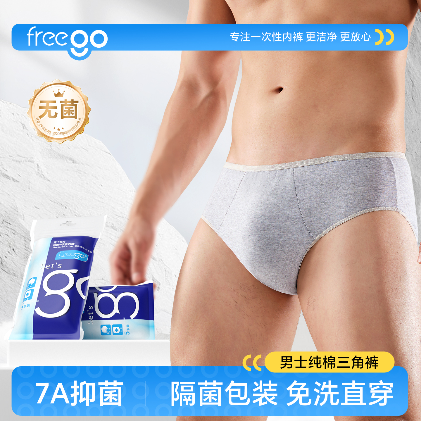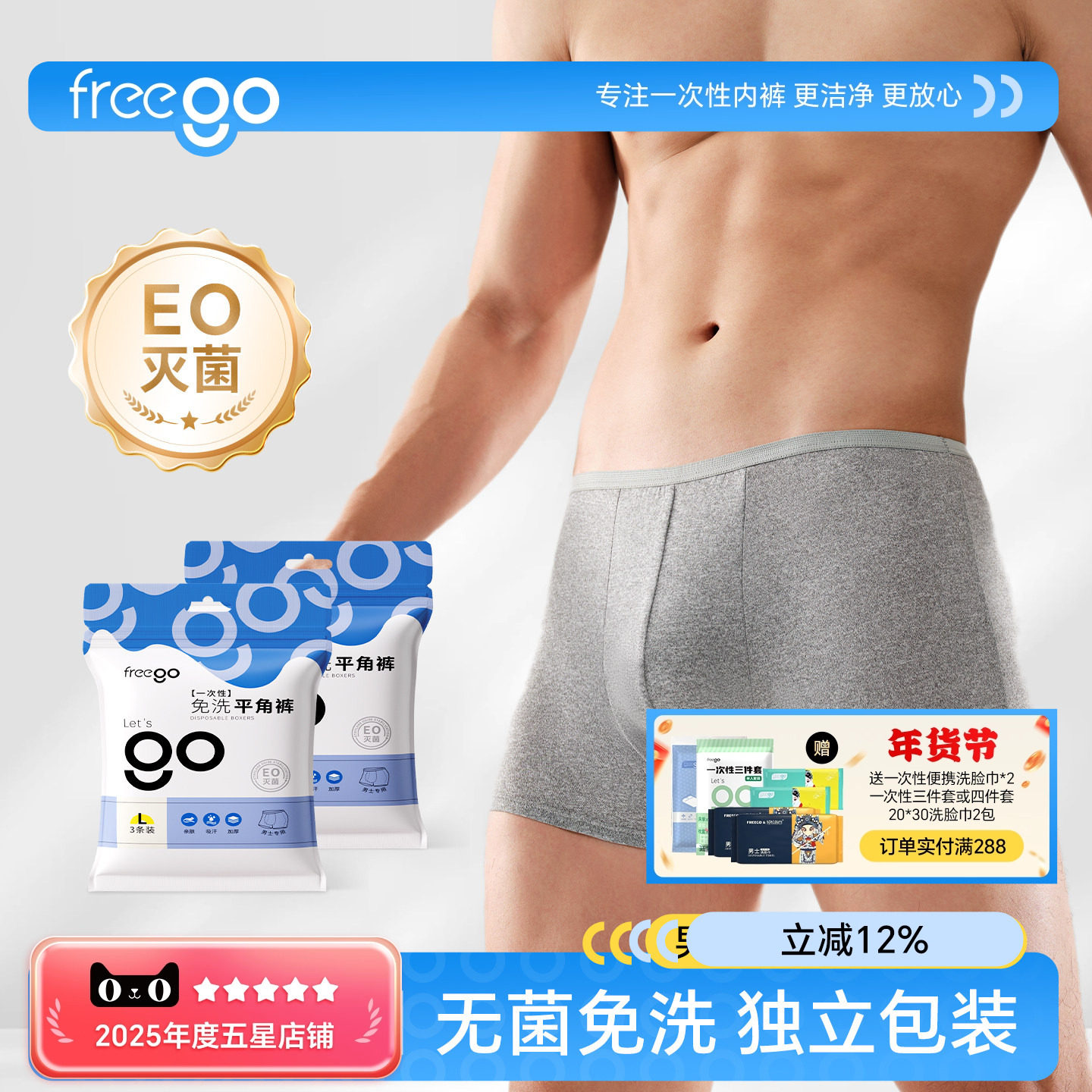 Freego一次性内裤男士纯棉灭菌平角日抛大码旅行用品四角三角短裤