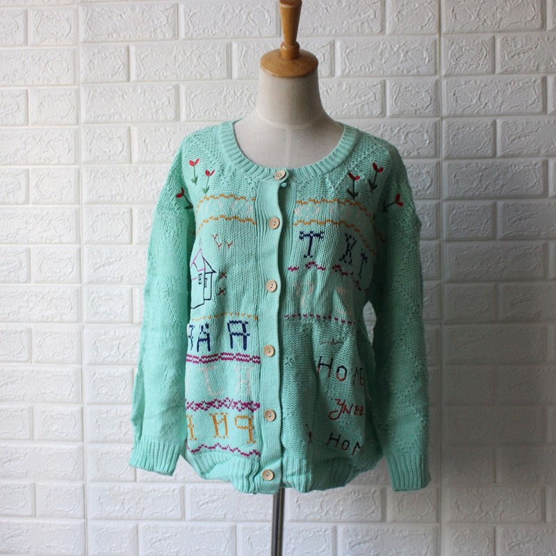 逗酱原创秋冬日系古着vintage软妹小熊毛线粗棒麻花加厚毛衣开衫