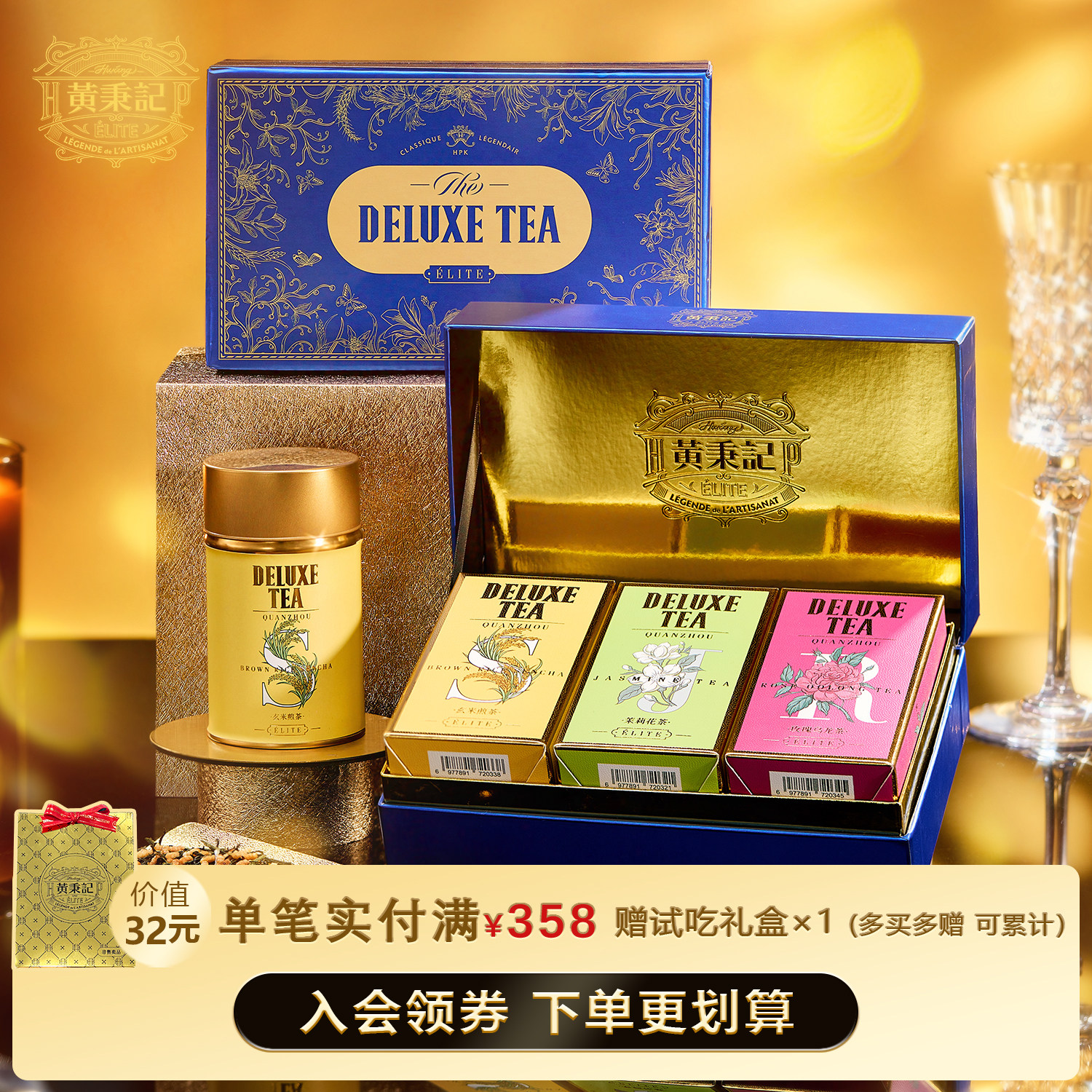 黄秉记融合花茶伴手礼盒 茉莉/菊花/普洱/玫瑰/陈皮/伯爵玄米煎茶