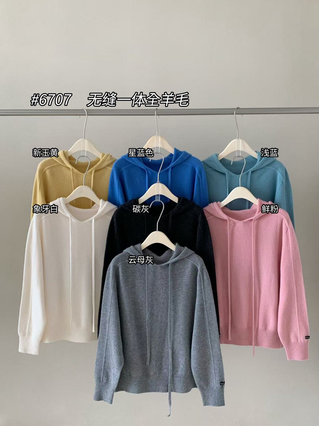 韩系全毛无缝一体连帽抽绳长袖针织衫女软糯洋气百搭显瘦套头毛衣