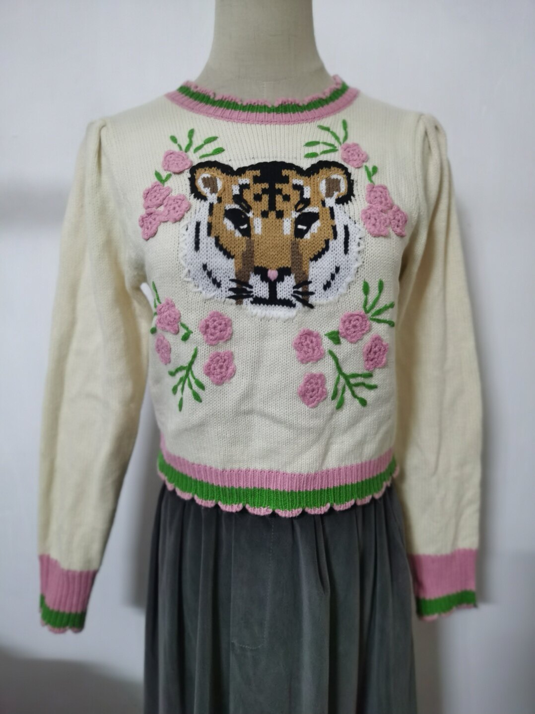 橘子树在哪儿奶fufu小狗提花针织衫女冬季氛围感软糯显瘦套头毛衣