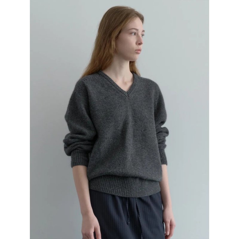 深灰色V领显瘦套头毛衣女秋冬季简约基础款长袖毛针织衫加厚上衣