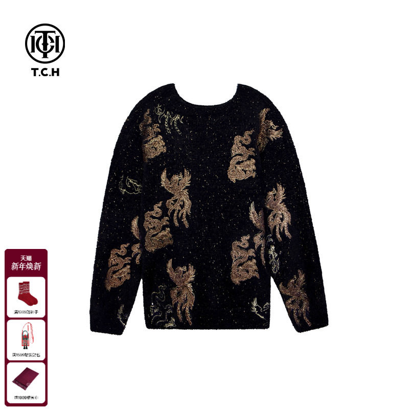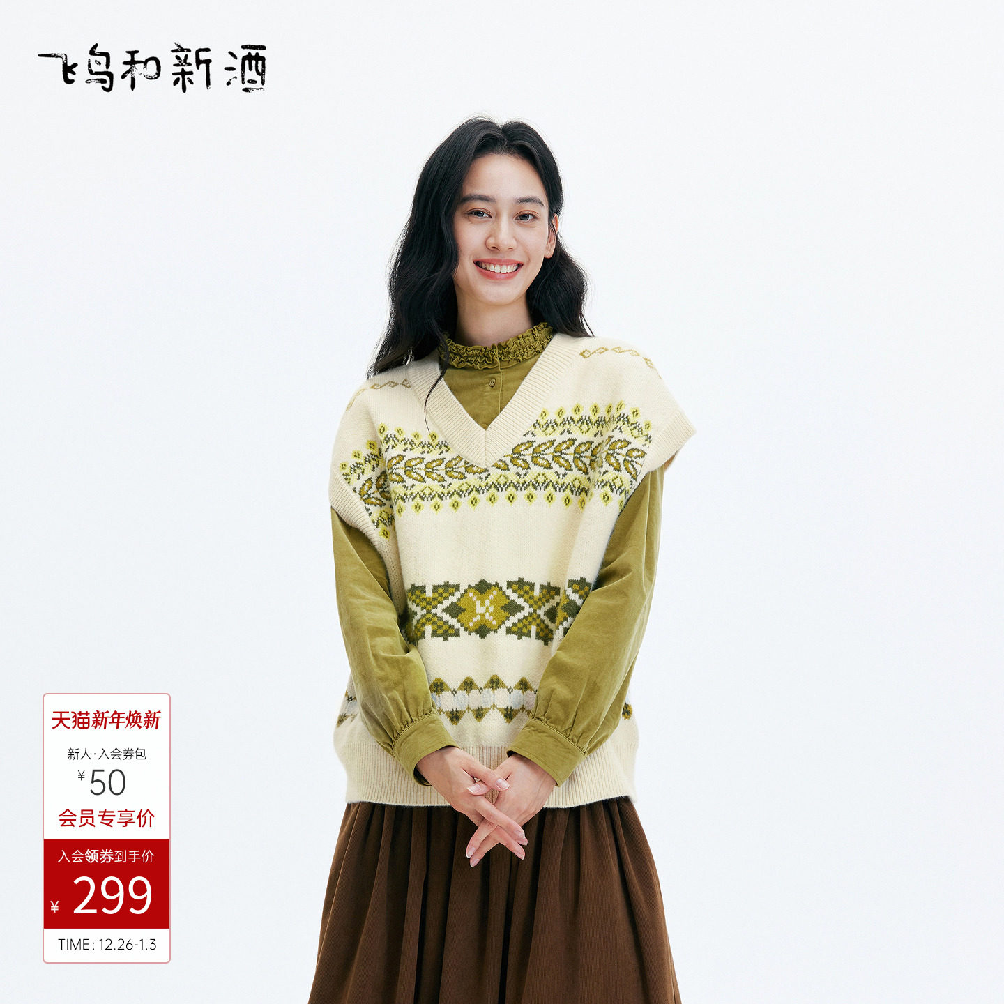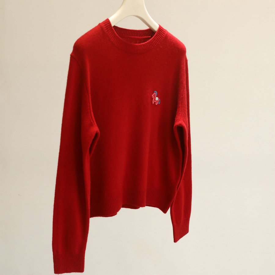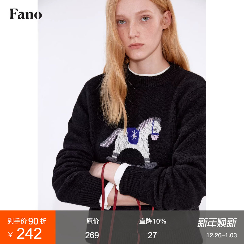 范洛Fano 马年特别款圆领正肩小众木马提花显瘦套头毛衣女上衣冬