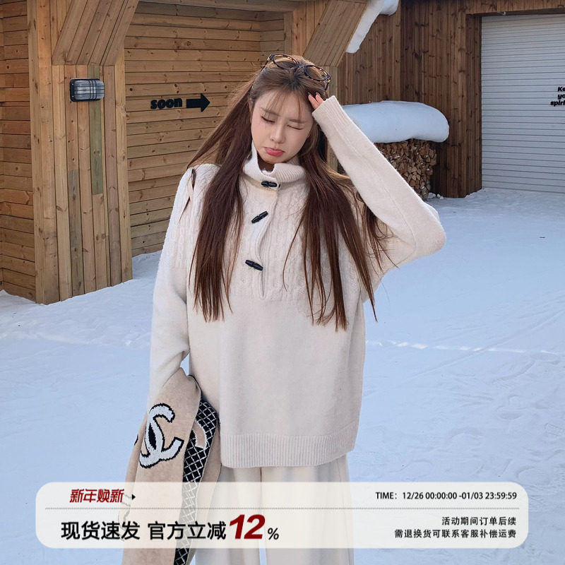 饭饭又饿了奶fufu高领针织衫女冬季巨好看慵懒风软糯显瘦套头毛衣