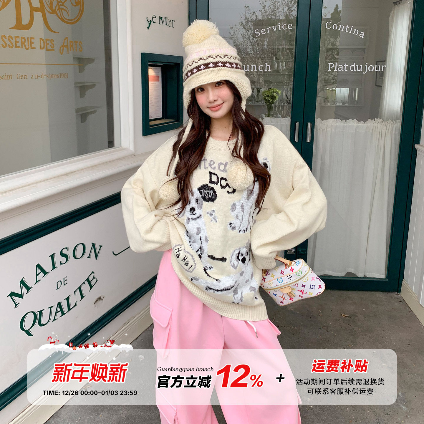 橘子树在哪儿韩系小狗印花毛衣女秋季慵懒软糯宽松显瘦套头针织衫