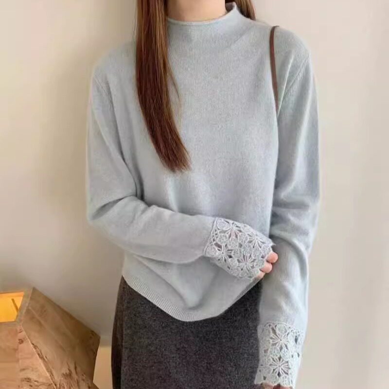 半高领baby蓝打底衫女春秋内搭高级感修身显瘦套头毛衣针织衫上衣