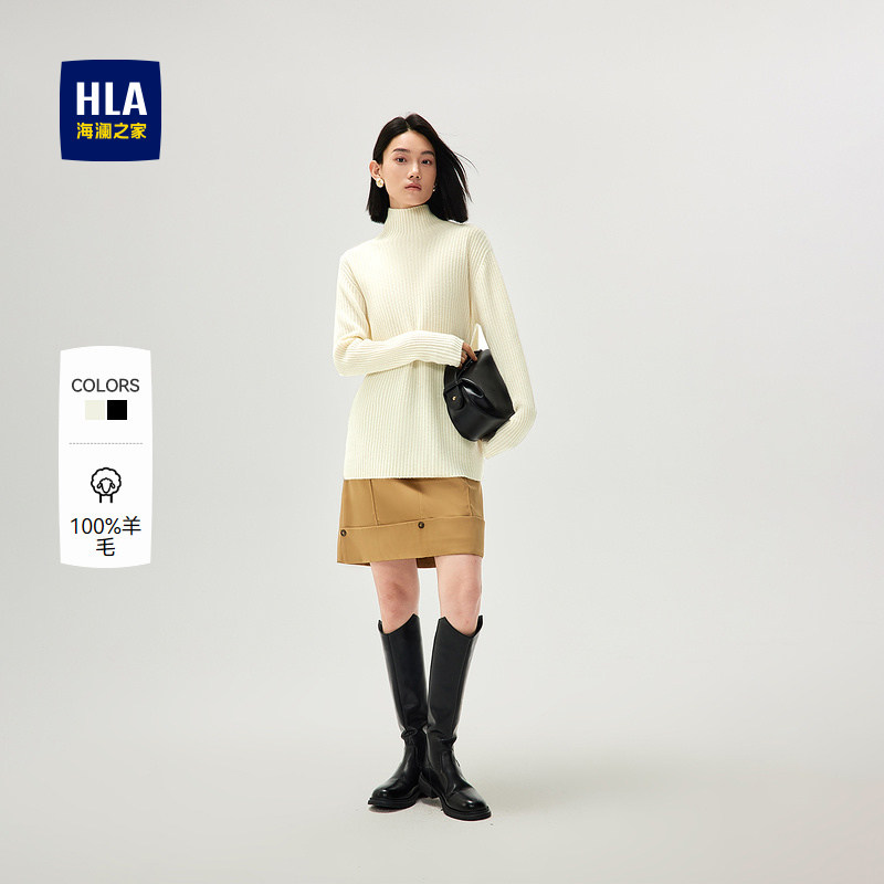 【纯羊毛】HLA/海澜之家针织衫秋冬新款可翻高领显瘦套头毛衣女装