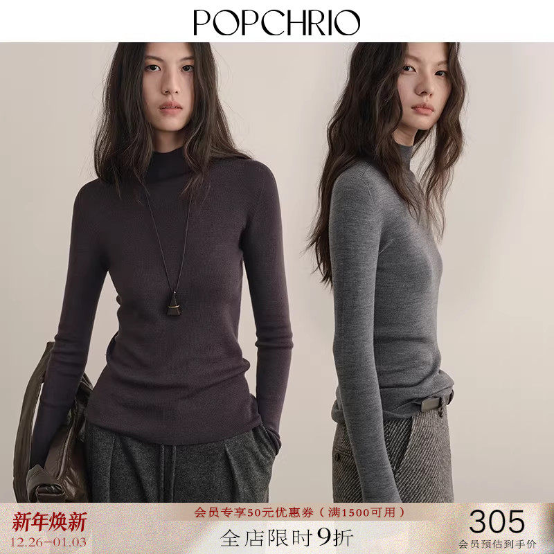 MULVAN polo领针织衫女秋冬长袖修身显瘦套头毛衣内搭打底衫上衣