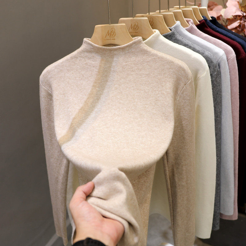 半高领打底衫女秋冬新款软糯宽松显瘦套头毛衣薄款内搭中领针织衫