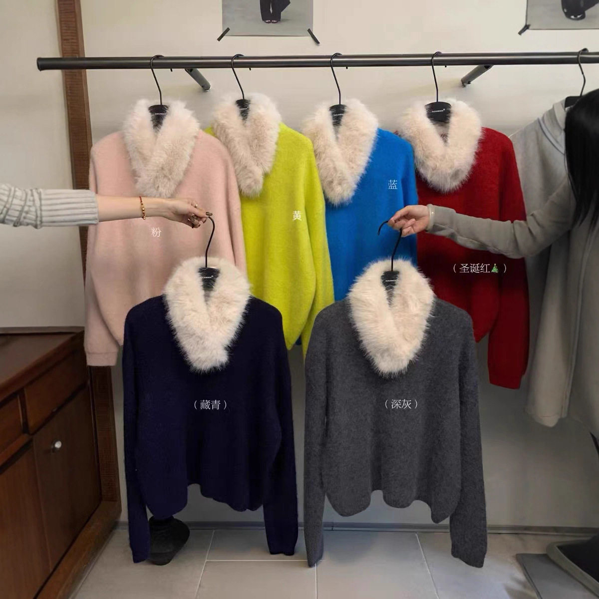 韩系毛领穿搭!2025秋冬新款慵懒宽松保暖极简显瘦套头毛衣女