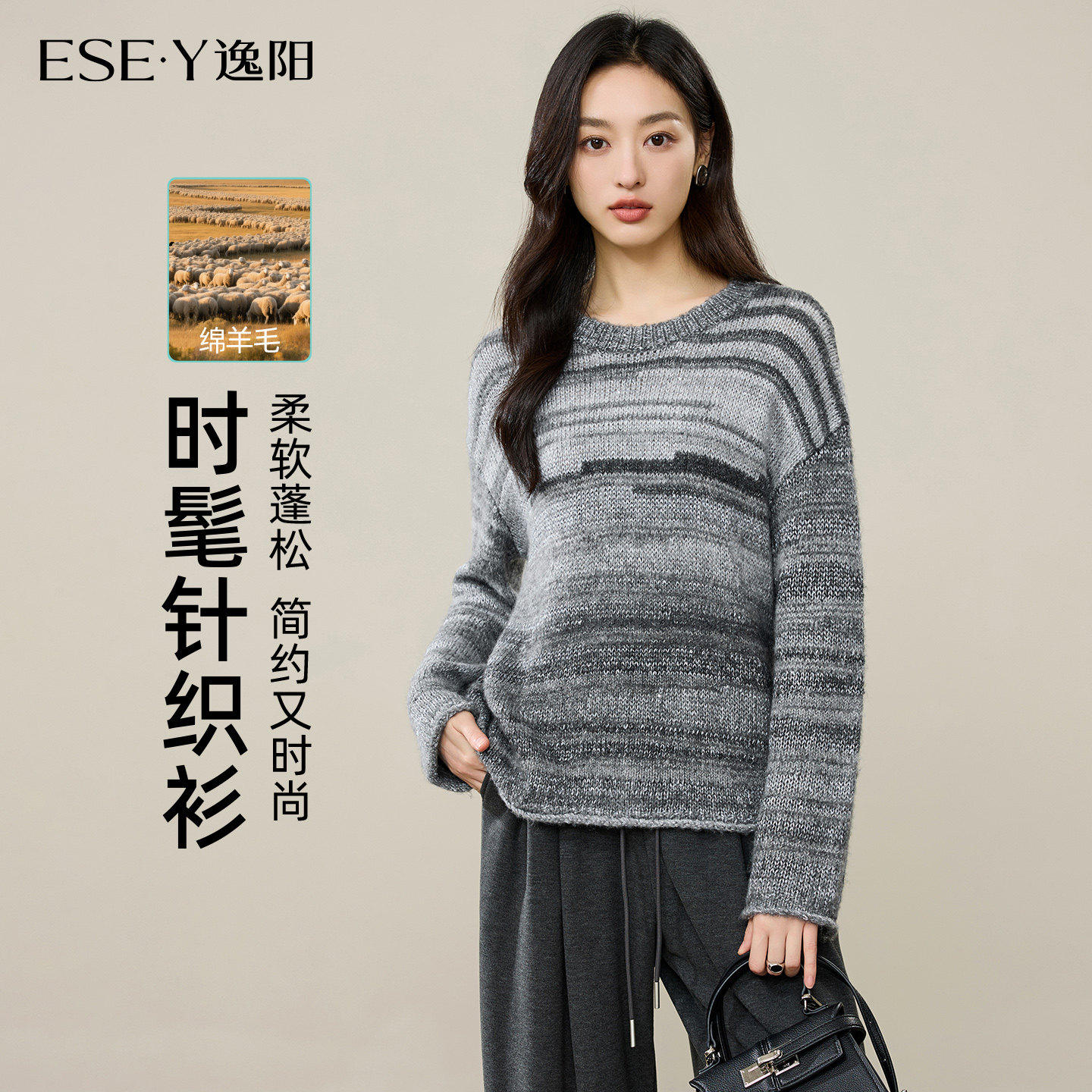 逸阳软糯羊毛衫女2025秋冬新款圆领渐变显瘦套头毛衣宽松针织上衣