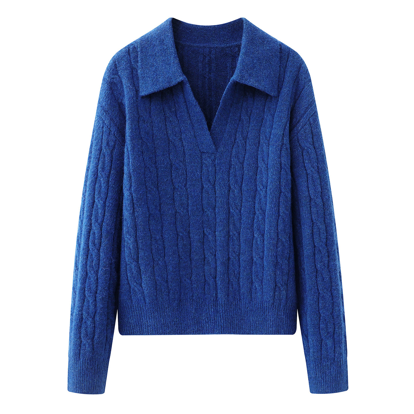 彩系の2025冬新款时尚高级感绞花POLO领针织衫女慵懒显瘦套头毛衣
