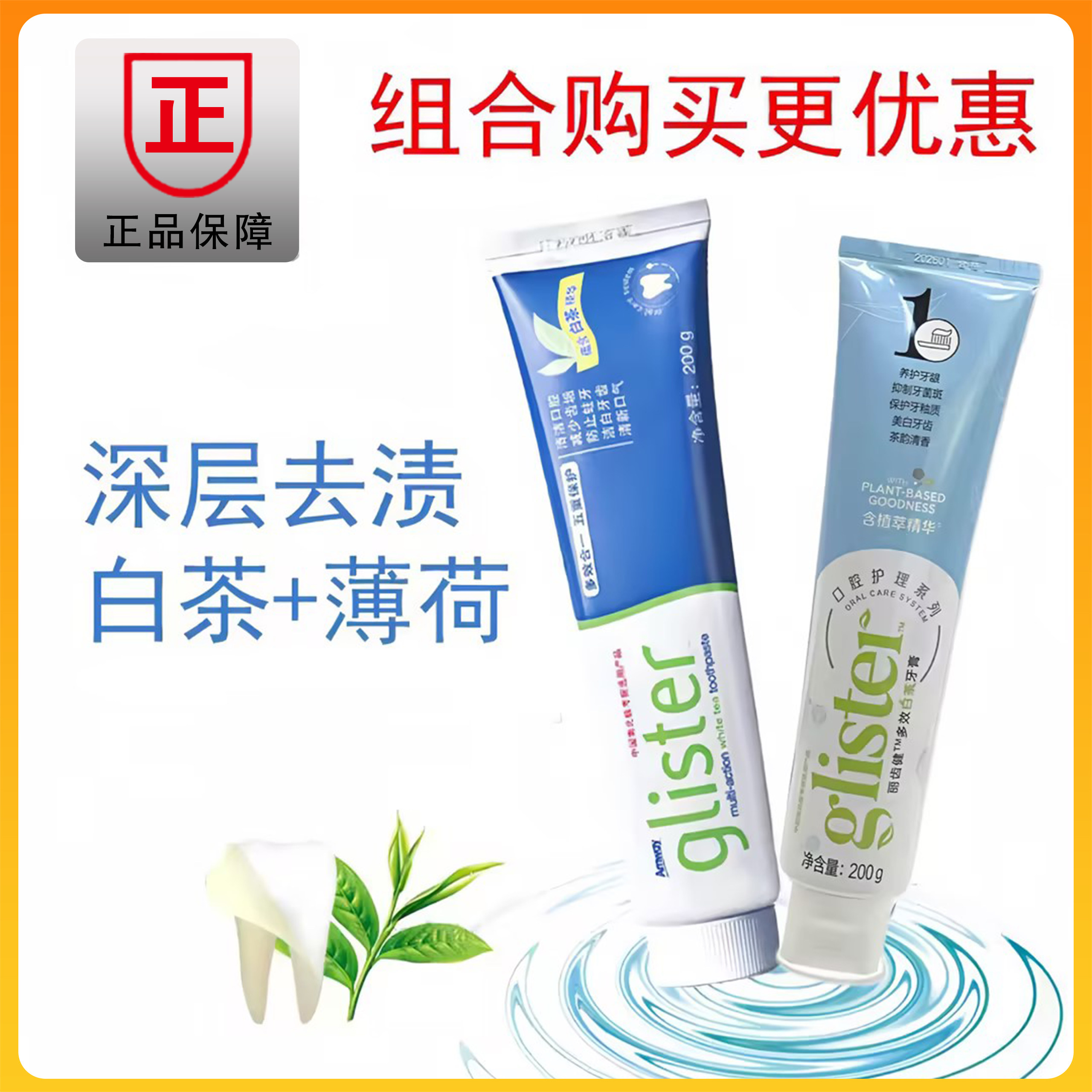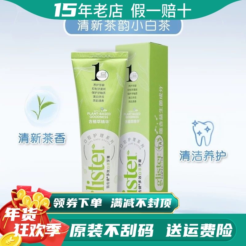 官网正品Amway安利牙膏美白去黄口臭多效白茶含氟丽齿健口气清新