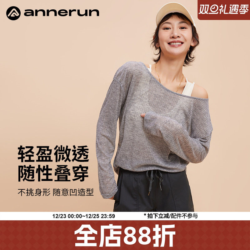 annerun防晒罩衫女新款薄纱上衣宽松透气慵懒风夏运动长袖瑜伽服