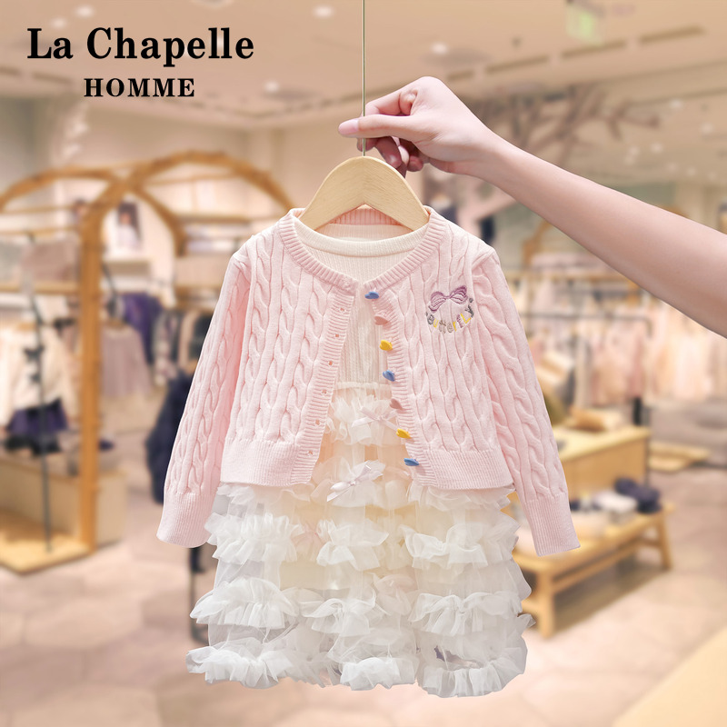 拉夏贝尔女童秋季连衣裙套装新款儿童宝宝洋气针织开衫两件套裙子