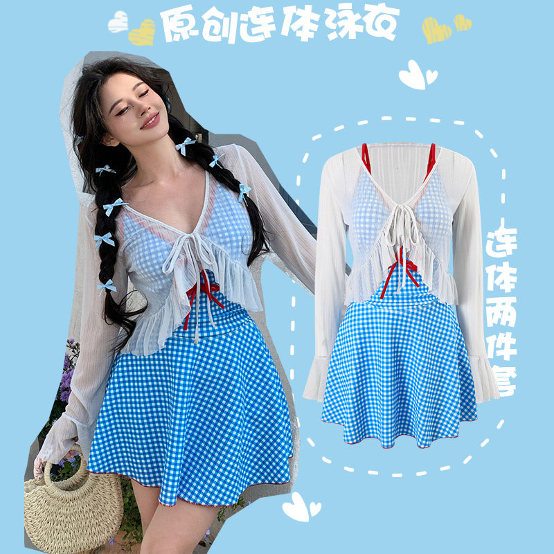 苏拉娜公主两件套连体泳衣女保守显瘦遮肚裙式长袖运动泡温泉泳装
