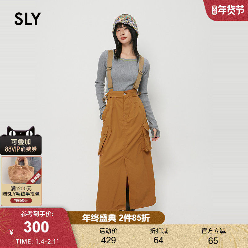 sly 2024冬季新品工装风开叉大口袋背带半身裙女030HAZ31-5261