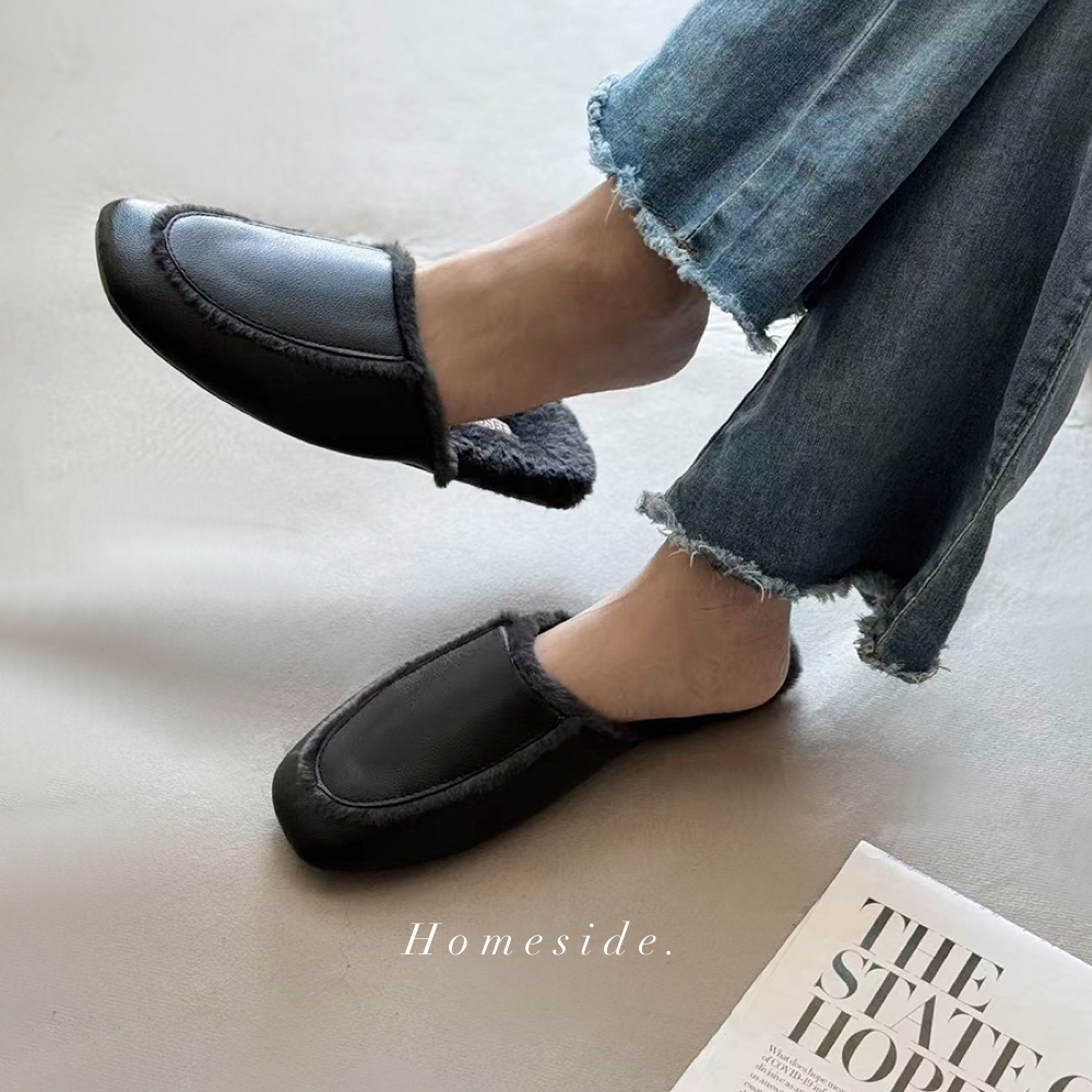 冬季毛毛绒家居拖鞋牛皮兔毛家用可外穿轻奢时尚保暖女网红穆勒鞋