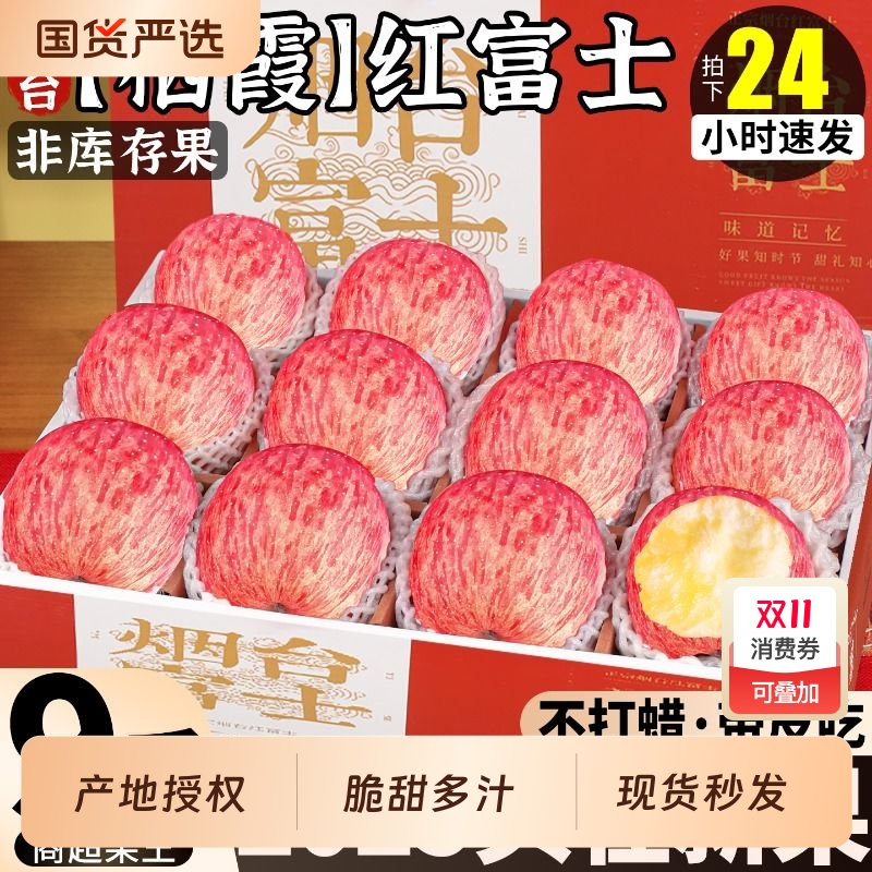 正宗烟台苹果新鲜水果脆甜多汁皮薄肉厚应当季整箱红富士产地直发