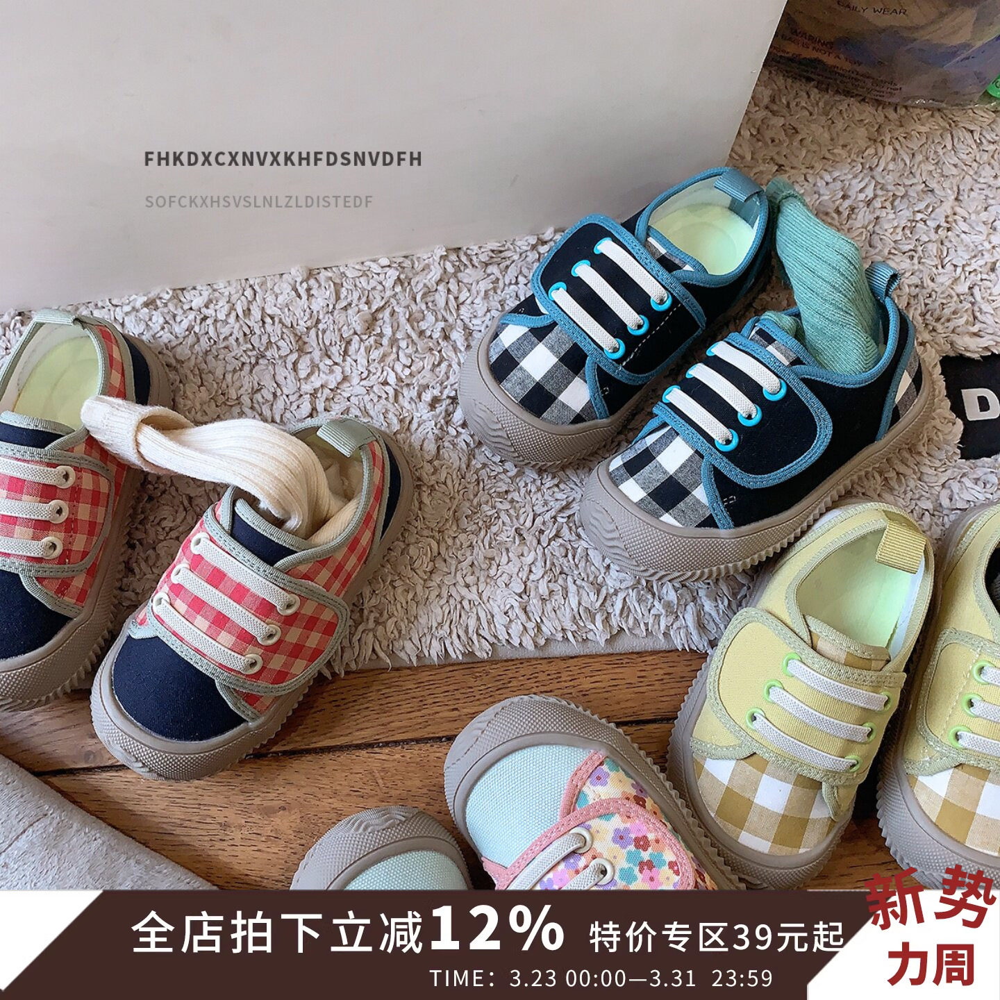 格子儿童帆布鞋韩版春秋女童板鞋2026男童休闲鞋宝宝幼儿园室内鞋