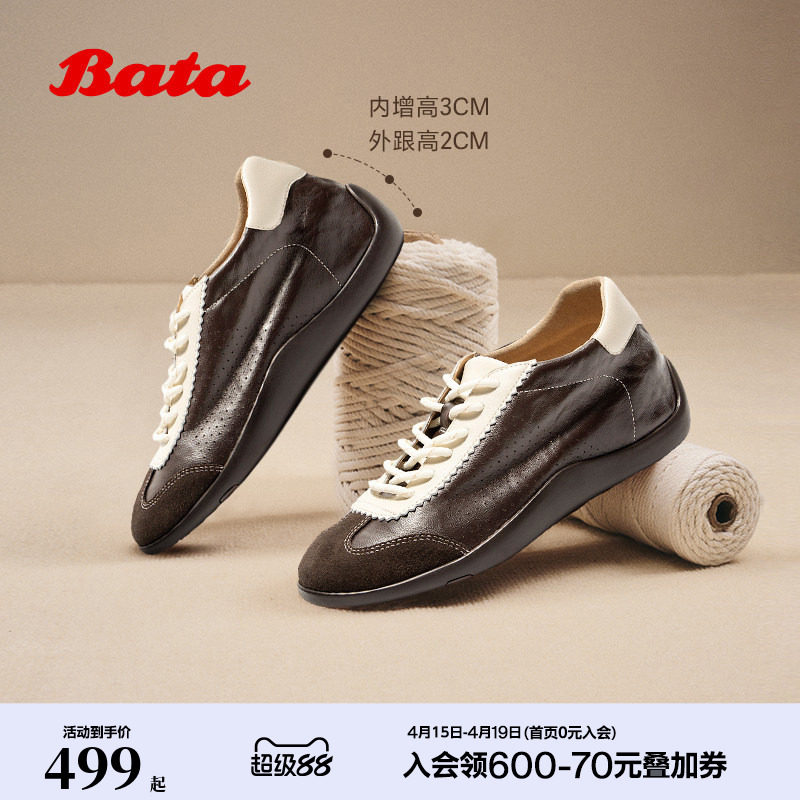 王子奇同款Bata羊皮书女2026春商场新款内增高软底德训鞋ALI73AM6