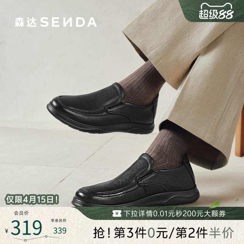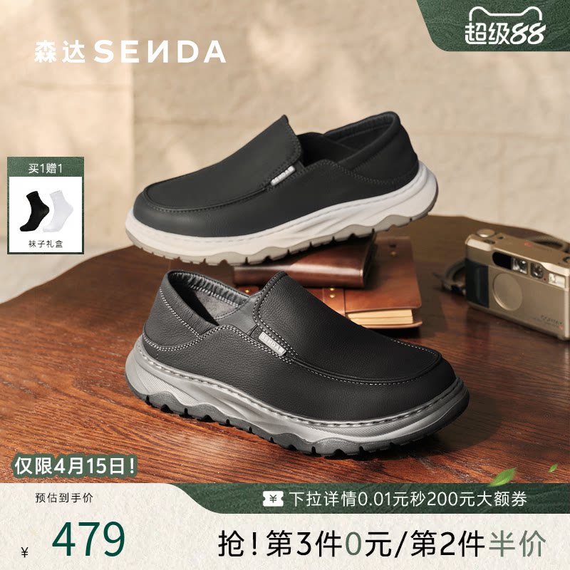 森达休闲皮鞋男2026春新商场同款一脚蹬运动舒软面牛皮鞋2BQ01AM6