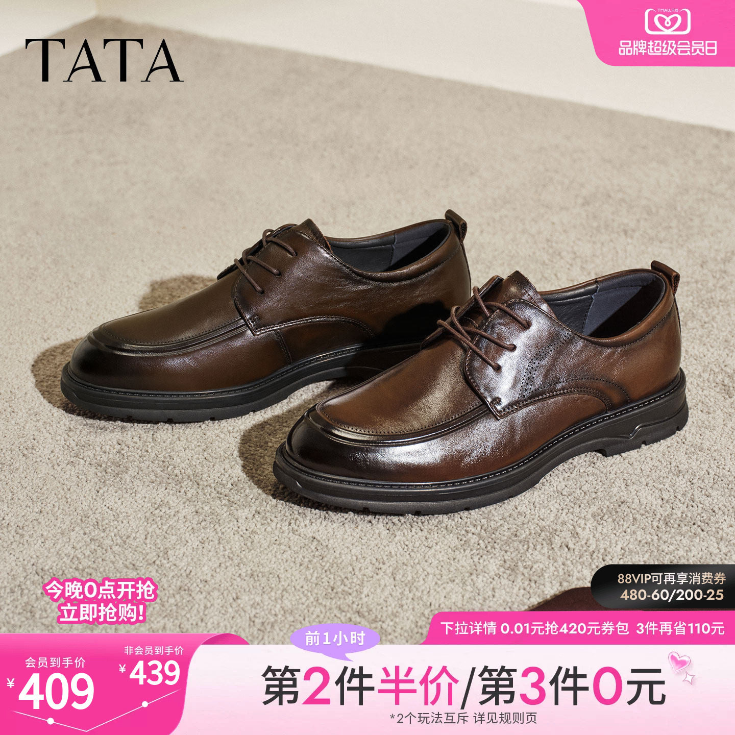 TATA他她男鞋2026春季商场同款舒适百搭商务正装皮鞋新款OFX01AM6