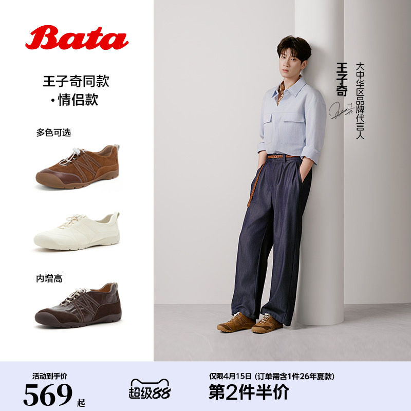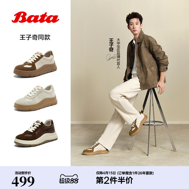 王子奇同款Bata羊皮书德训鞋2026春商场新款厚底运动鞋AD121AM6