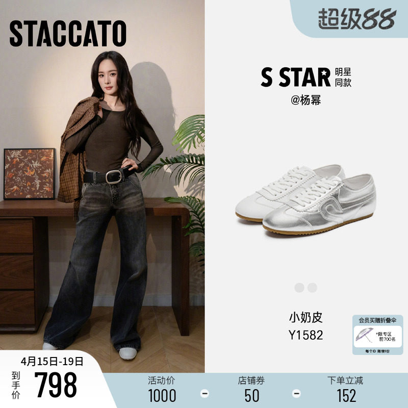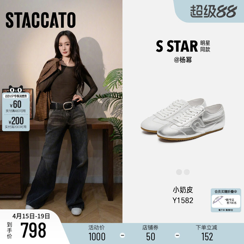 思加图新款杨幂同款小奶皮德训鞋复古小白鞋薄底运动休闲Y1582AM6
