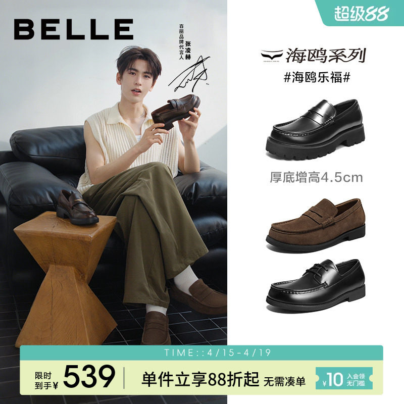 张凌赫同款百丽海鸥乐福男士一脚蹬休闲皮鞋男厚底增高鞋A2308AM6
