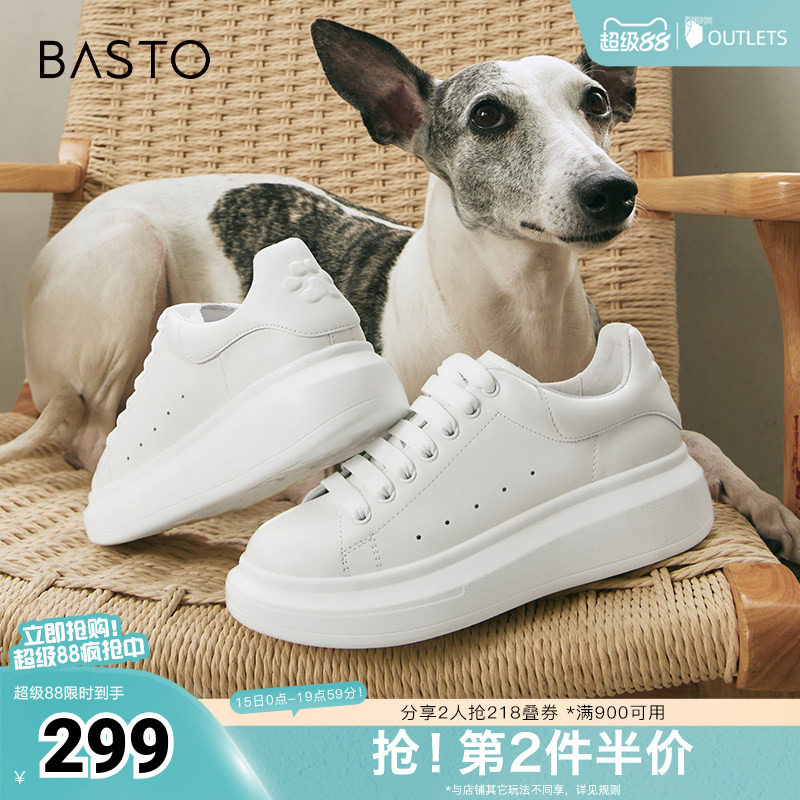 百思图春秋季新款商场同款时髦休闲小白鞋厚底女休闲鞋ZWZA3AM4
