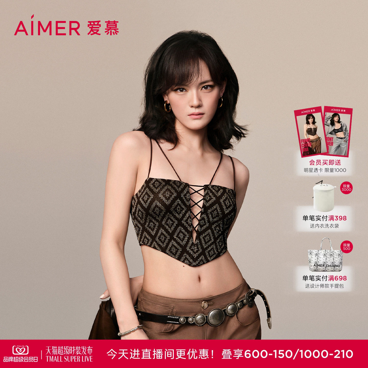 【文淇同款 封面文胸】爱慕内衣女无钢圈小巧抹胸式文胸AM17C521