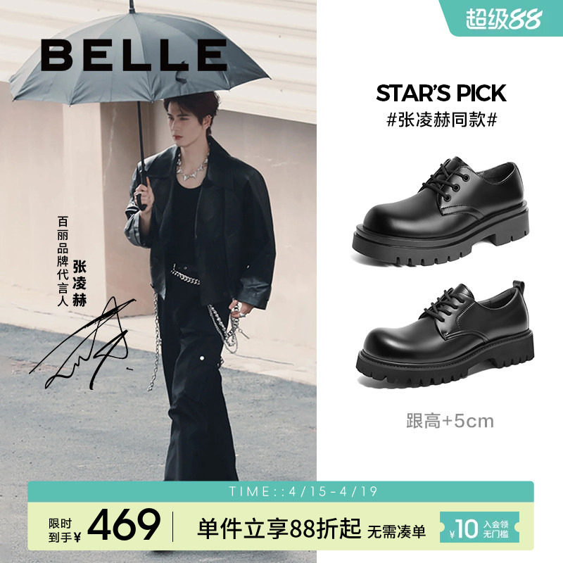 张凌赫同款百丽男鞋夏季新款厚底增高皮鞋大头休闲德比鞋A1434AM4