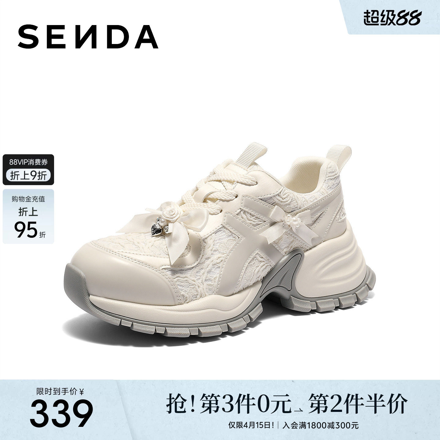 森达老爹鞋女2026春季新款商场同款蝴蝶结厚底休闲鞋XZF01AM6