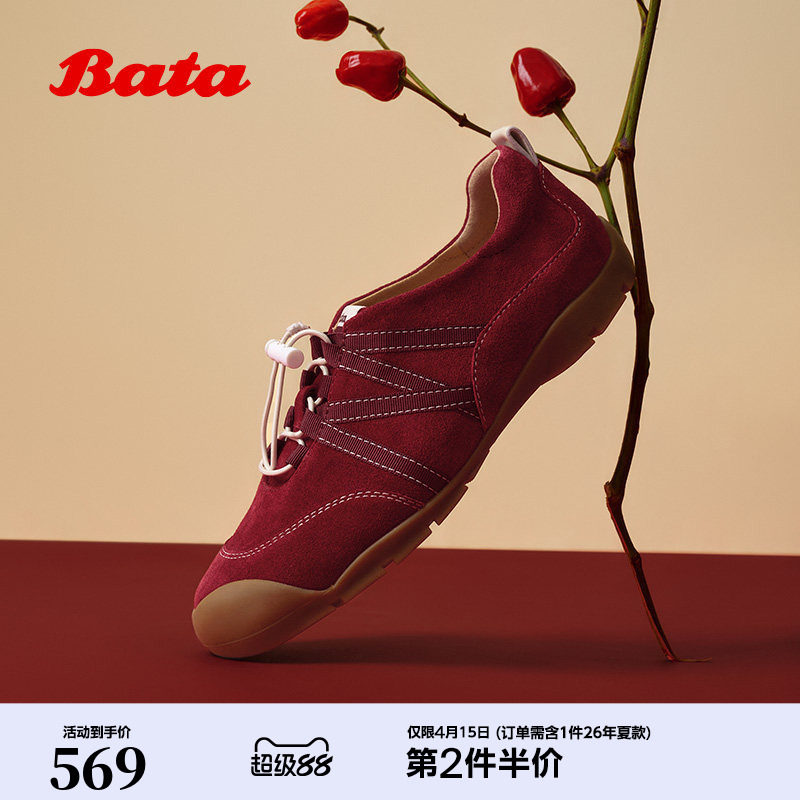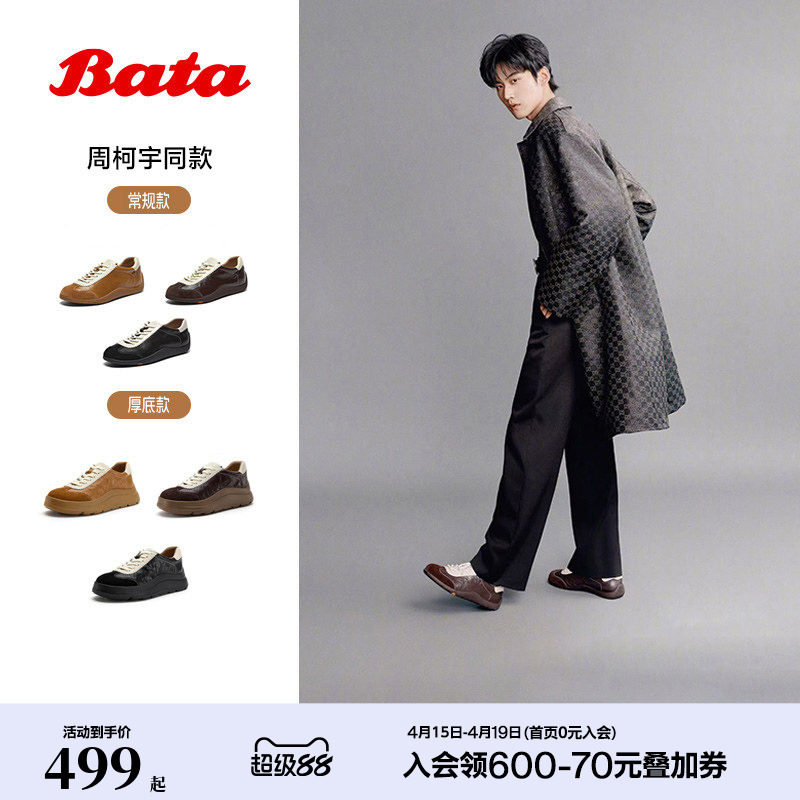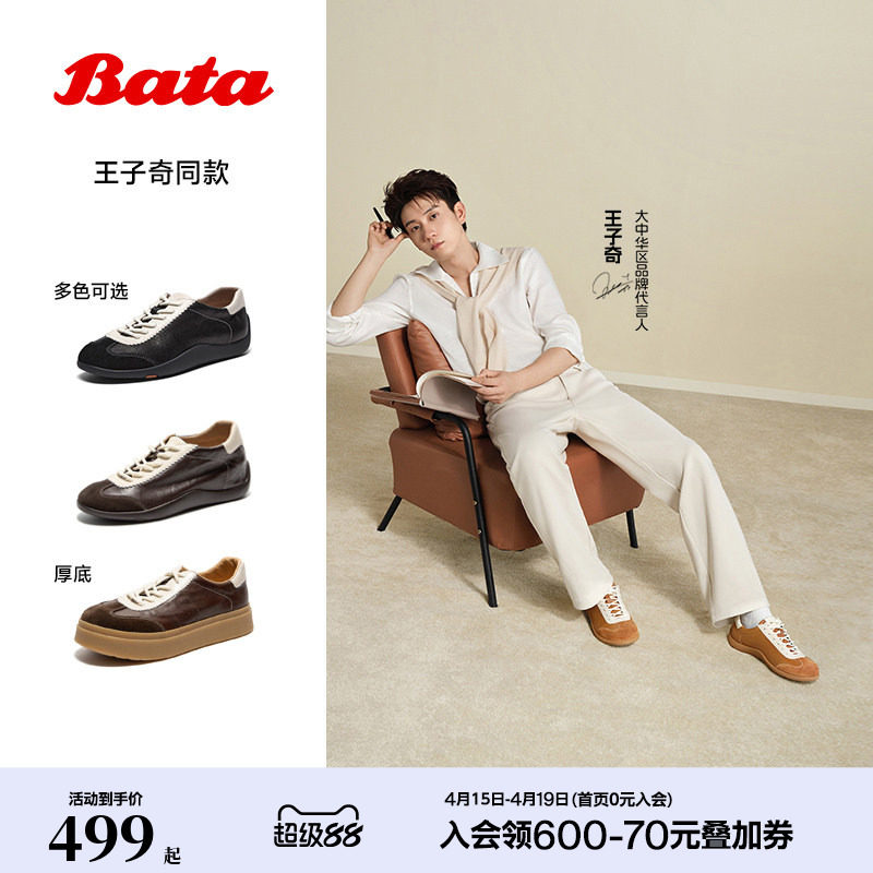 周柯宇同款Bata羊皮书德训女26春商场情侣软底休闲运动鞋ALI45AM6