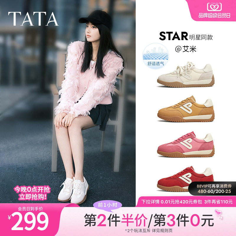 艾米同款TATA他她红色德训鞋女鞋透气复古运动鞋阿甘鞋SKV01AM5