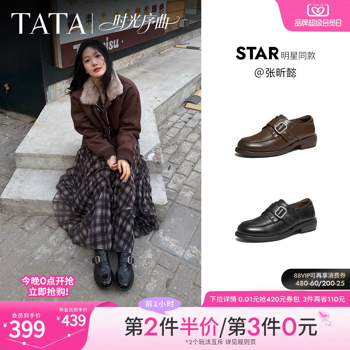 张昕懿同款TATA他她时光序曲真皮乐福鞋小皮鞋女厚底单鞋JZZ01AM6