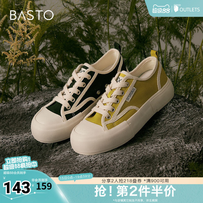 百思图奥莱秋季商场同款帆布鞋厚底板鞋女运动休闲平底鞋VC204AM5