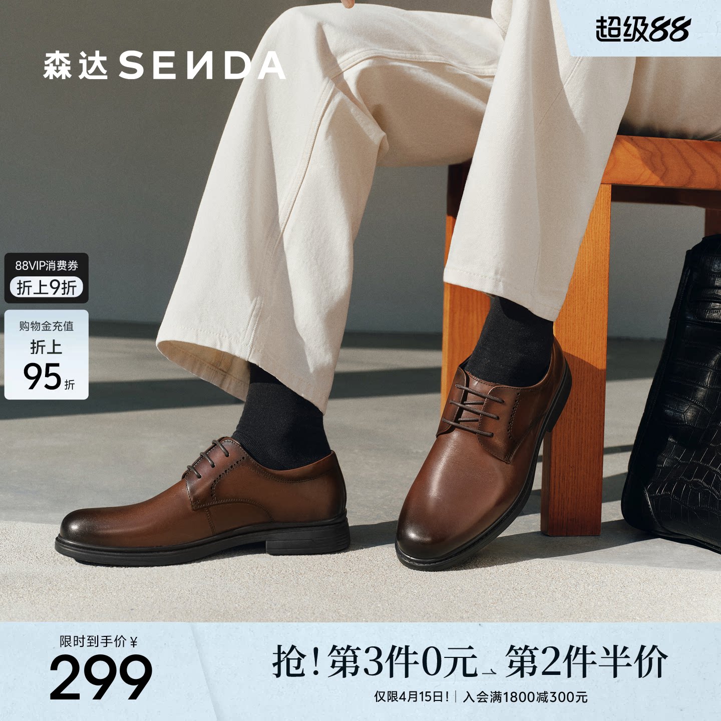 森达正装鞋皮鞋男子商场同款职场通勤真皮男士商务鞋1UK01AM5