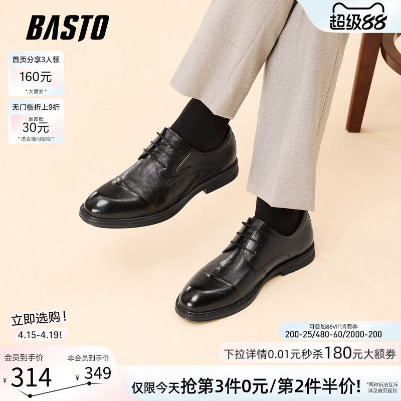 百思图2026春季新款商场同款正装皮鞋简约商务男鞋WDP01AM6