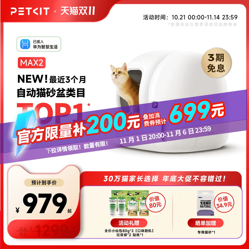 小佩全自动猫砂盆MAX2电动智能猫厕所猫咪用品封闭防臭防外溅铲砂