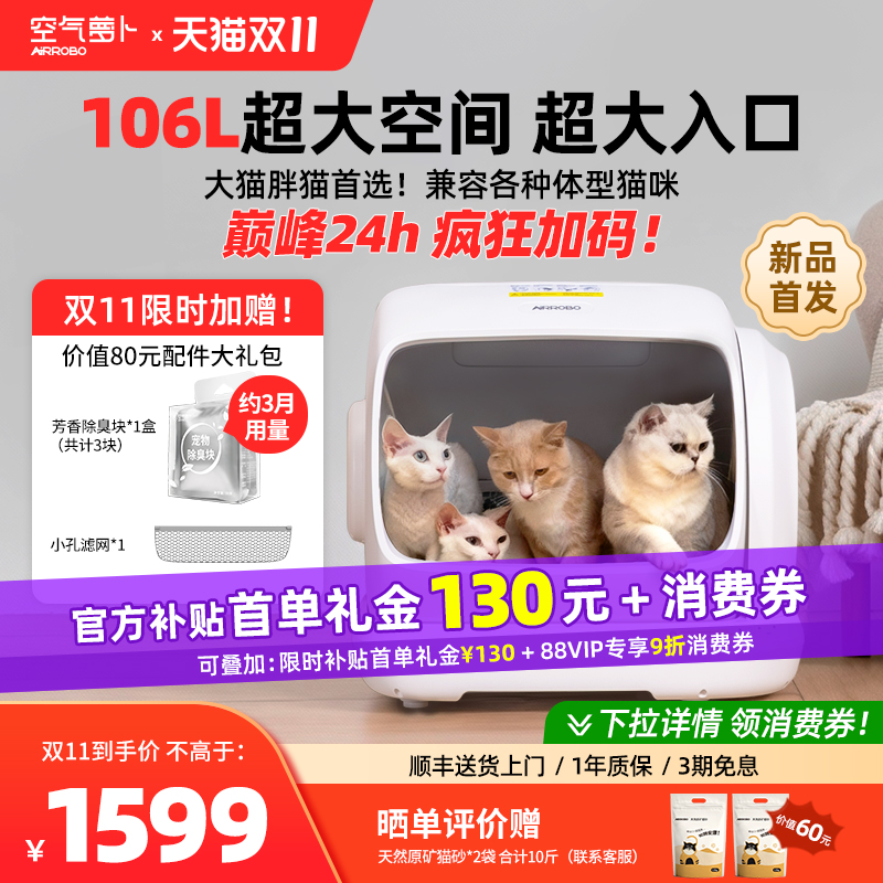【新品首发】空气萝卜超大号自动猫砂盆开放式智能电动清理猫厕所