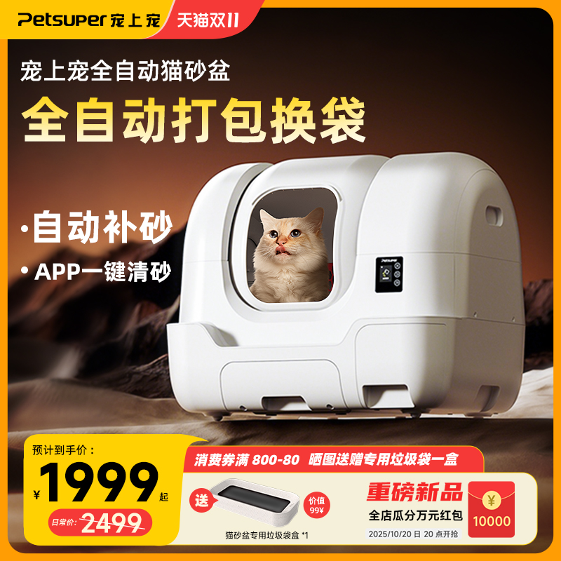 petsuper宠上宠全自动猫砂盆自动补砂打包清理一体电动智能猫厕所