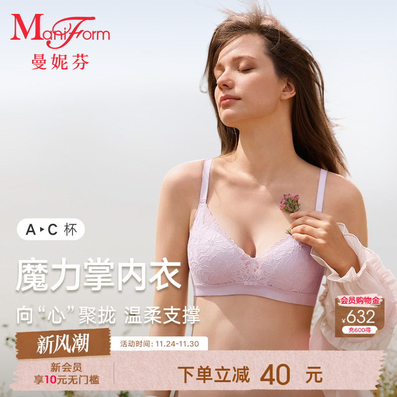 曼妮芬魔力掌内衣性感蕾丝舒适聚拢文胸小胸显大聚拢女士秋季胸罩