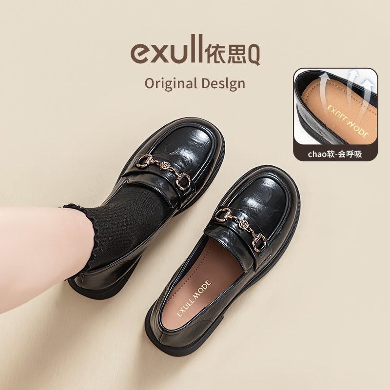 依思q小皮鞋女2026新款女鞋英伦风上班不累脚百搭厚底软底乐福鞋