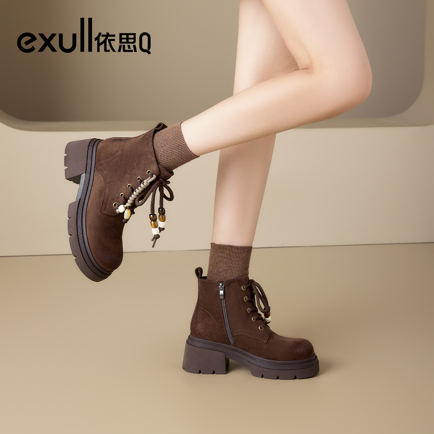 exull/依思Q2025秋季复古工装女靴厚底粗跟马丁靴户外百搭休闲
