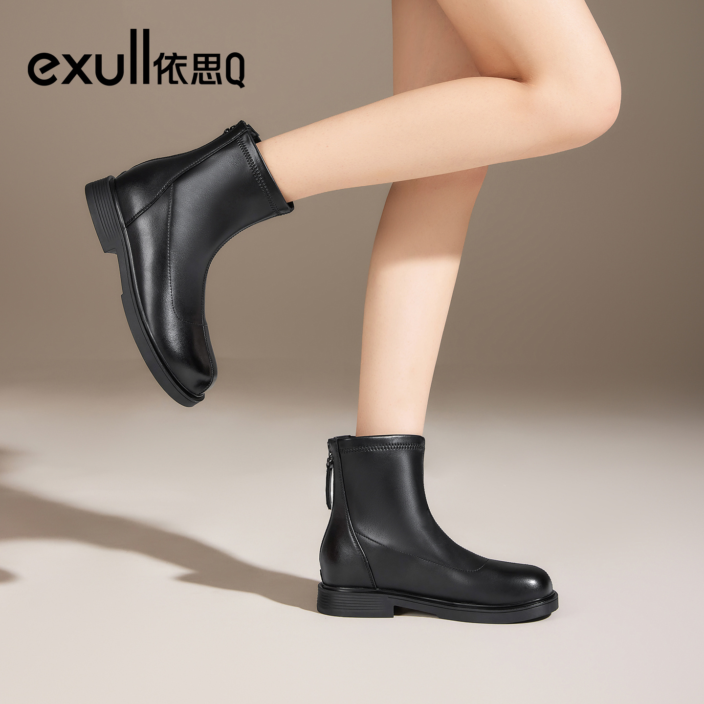 exull/依思Q马丁靴女款2025秋新款粗跟厚底小短靴百搭软底瘦瘦靴