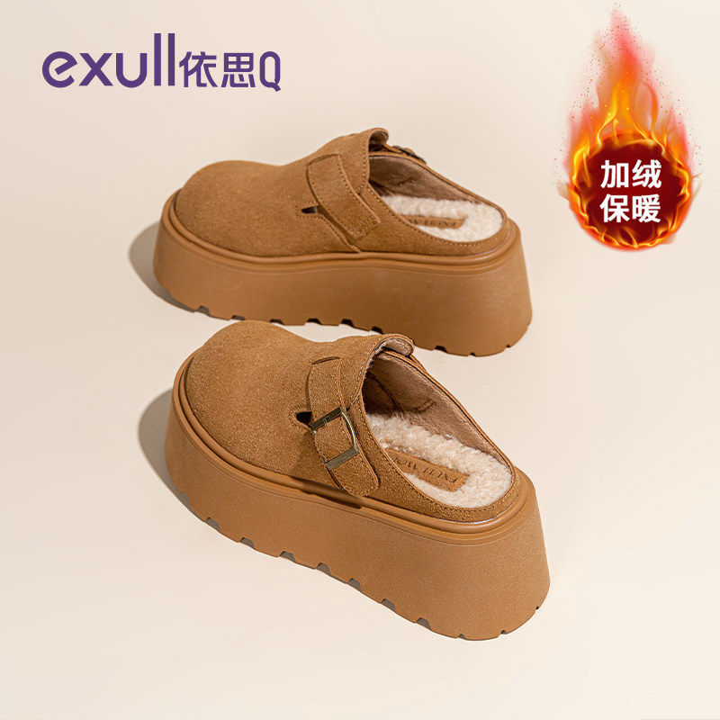 依思q厚底勃肯鞋2026冬季新款加绒保暖雪地靴增高勃肯包头半拖鞋